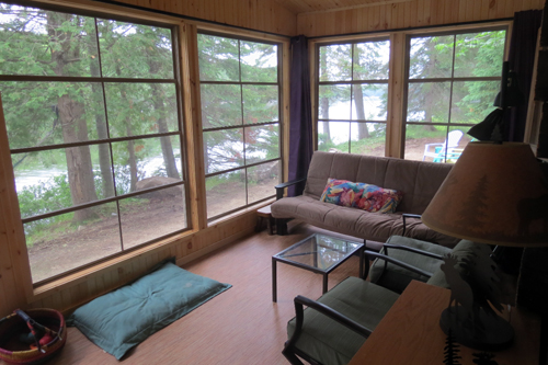 - Muskoka Room: Comfortable chairs and table for playing games or eating. A breathtaking view of the water and early morning sunrises.